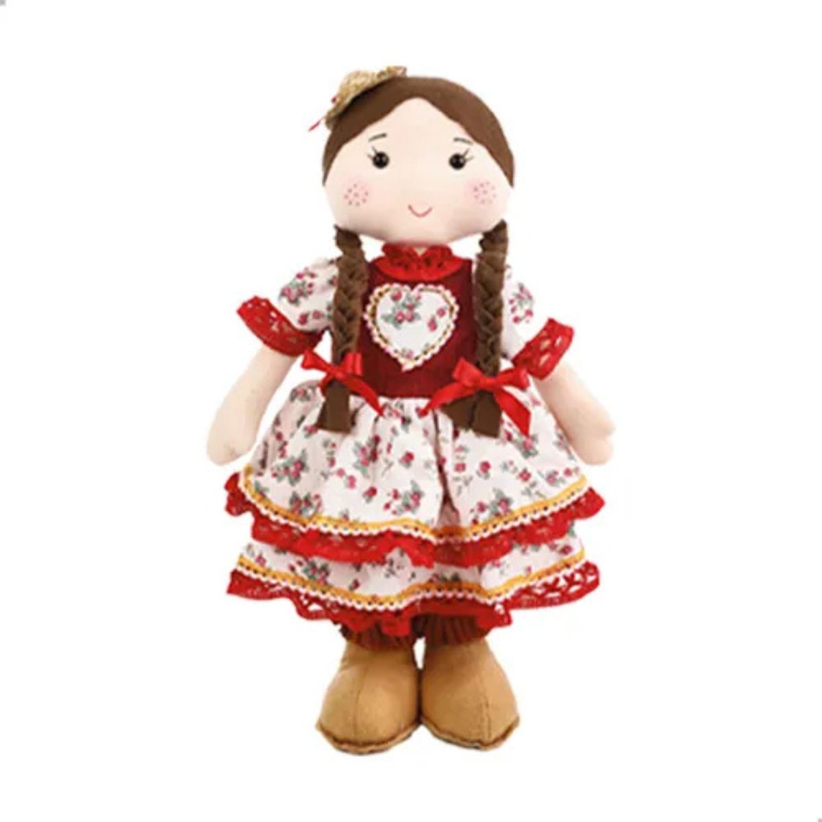 Conheça a Boneca de Pano Carminha. Feita com amor, ela encanta com suas tranças delicadas e vestido florido. Um presente cheio de ternura para encantar todas as idades!