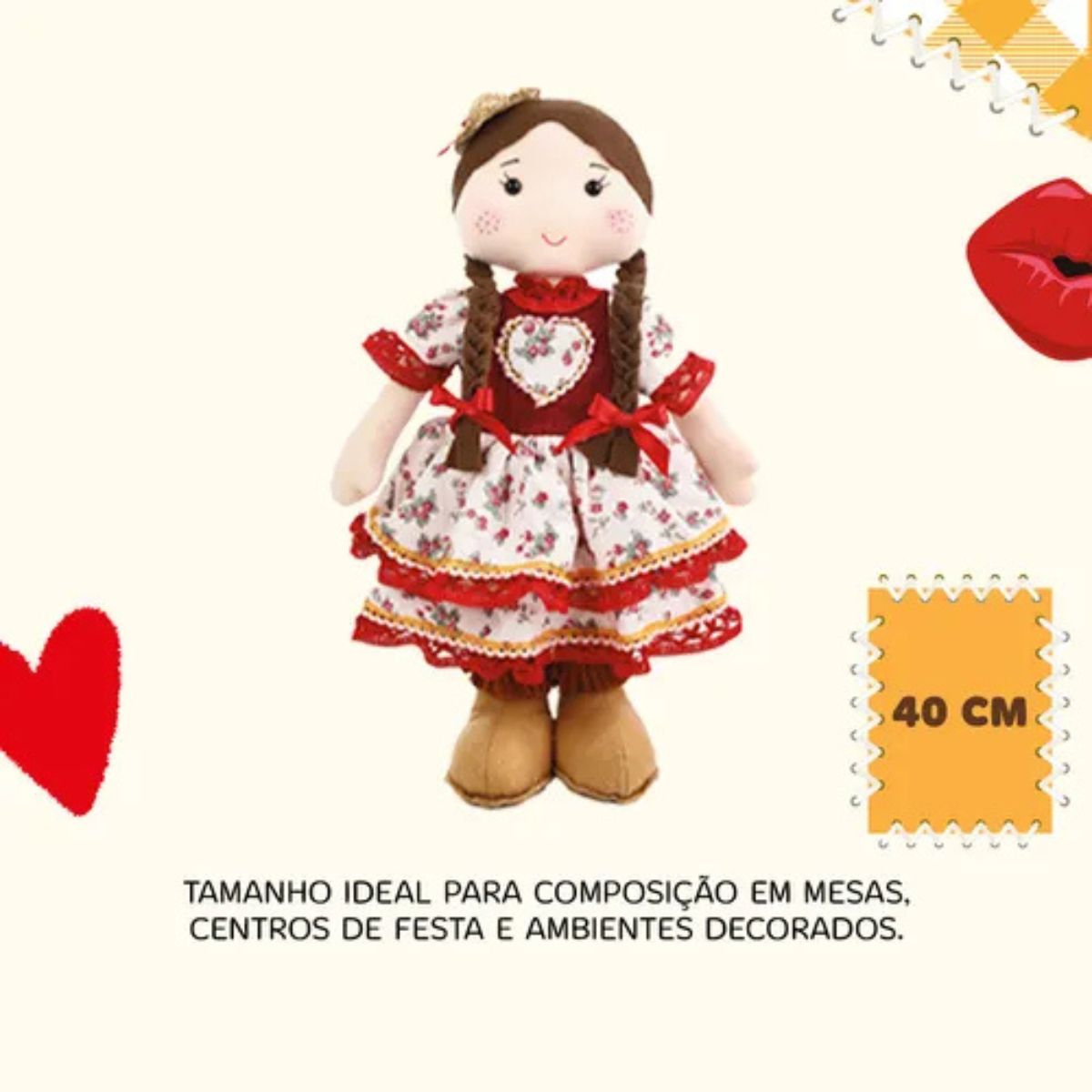 1x Boneca Caipirinha Carminha 40cm – com vestido temático e laços coloridos