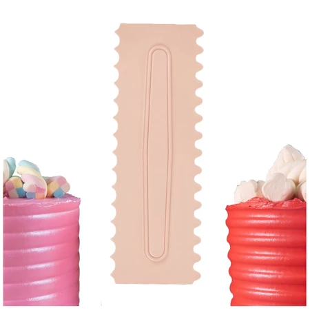 A espátula decorativa, é fabricada com material resistente, que dá firmeza às mãos e produz um resultado homogêneo a toda circunferência do bolo, cada lado da espátula produz uma decoração diferente, deixe sua imaginação ir longe!