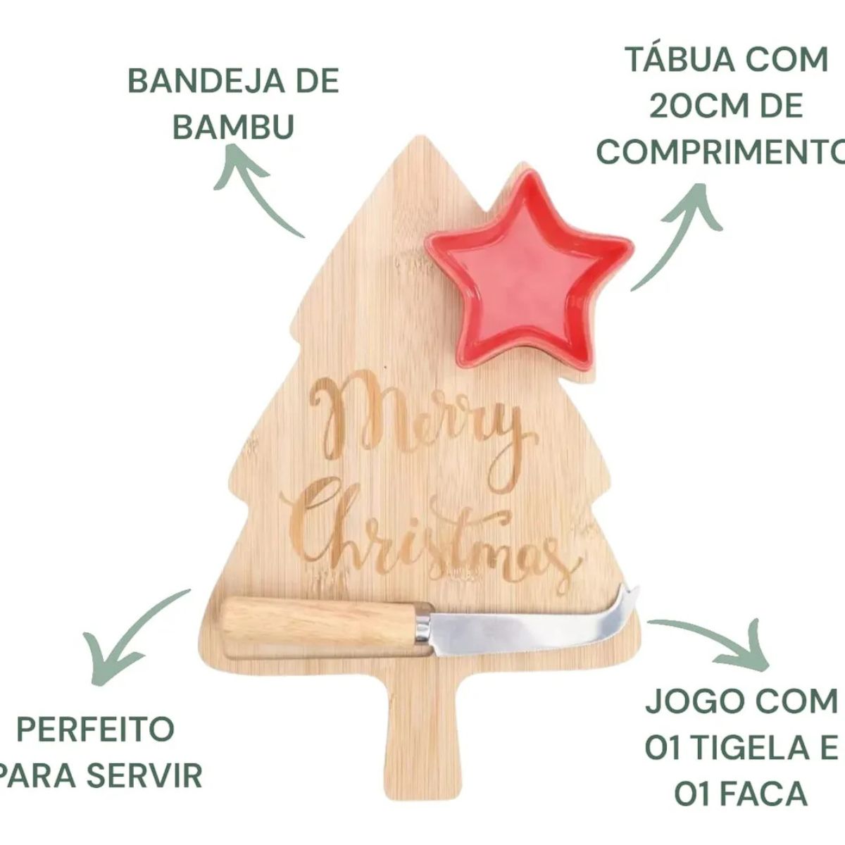 A Tábua de Servir – Árvore de Natal com Tigela e Faca da marca Cromus é a escolha perfeita para quem deseja adicionar um toque especial às celebrações de fim de ano. Com um design encantador em forma de árvore de Natal, esta tábua não é apenas funcional, mas também uma peça decorativa que encantará seus convidados.